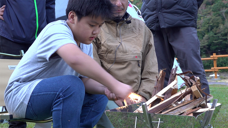 これからキャンプを始めてみたいという方々が参加した、和歌山県日高川町 鳴滝オートキャンプ場のプレイベント「手ぶらでキャンプ体験会」の様子をリポート。体験会 講師を務めた 番組キャンプアンバサダー山本マネージャーのアドバイスで、今回は焚き火篇。まずは、火が着きやすく、比較的柔らかい針葉樹の薪をナイフで小さく割っていく参加者の皆さん。更に 細くなった木を、ナイフで薄く削いでいき、鳥の羽根のような焚き付け材の「フェザースティック」を作ります。そうして焚き火の準備ができたところで、火打ち石のように、ファイヤースターターを使って火花をおこして着火させるのですが・・・。コツのいる点火方法に初挑戦する参加者の皆さんの奮闘ぶりに注目。この他、キャンプ場に隣接する紀州備長炭の製炭所では、コーヒー豆の焙煎も体験するなど初めての事ばかり、充実したキャンプ体験会の模様、そして、番組恒例の焚き火トークを通じて鳴滝オートキャンプ場や日高川町の魅力をお伝えします。
