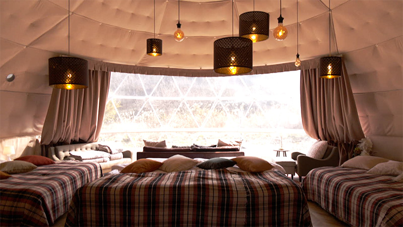 今回は大阪府南部の貝塚市へ! 二色の浜から山に向かうと、広大な敷地を持つ「かいづか いぶきヴィレッジ」が現れます。こちらはもともと農業公園ということで、コンセプトは「農業×グランピング」。グランピングエリアの総面積はなんと約5200㎡もあり、そこに大小さまざまな17棟のテントがゆったりと配置され、のどかで穏やかな時間が流れる中、素材を活かしたシェフのフレンチスタイルBBQを堪能できるんです。さらに、ジャグジー、テントサウナ、モルック、温泉も! そして、季節に応じた野菜や果物を自分で収穫して食べることもできるんです。大興奮の「やまちむ」コンビは旬の収穫体験でガチ対決! そしてキャンプ界の「○○○王」が誕生!? お楽しみに!