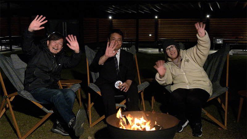 今回も大阪市内から車でおよそ1時間半、関西トップクラスの広さを誇る道の駅 四季の郷公園内にある宿泊施設「かなたのさと」へ! 和歌山の四季を感じ、豊かな食に触れ、自然に抱かれながら心を満たせるヴィラリゾートです。まずは山本さんのOrange紹介コーナーに、アパレル館の紅一点「あいちゃん」こと大西愛里さんが登場! 大西さんはアパレルの知識はもちろん豊富で、さらにインスタのモデルとしても大活躍してるんです。そして「かなたのさと」支配人、スーツ姿の山下さんと一緒にちむちむのボードゲームコーナー! 今回は室内で焚火を楽しめるかわいいアクションミニゲーム「タキビブロック」で、大のオトナ3人がテーブル上で熱いバトルを繰り広げます。息が詰まりそうな真剣モードなのになぜか爆笑連発、白熱の勝負の行方は果たして…? 今回も楽しさいっぱいのキャンプスタイル、お見逃しなく!