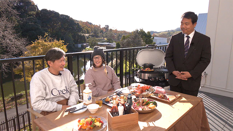 大阪市内から車でおよそ1時間半、関西トップクラスの広さを誇る道の駅 四季の郷公園内にある宿泊施設「かなたのさと」へ!和歌山の四季を感じ、豊かな食に触れ、自然に抱かれながら心を満たすヴィラリゾートです。里山の風景と調和する落ち着いた雰囲気の中で家族や気心の知れた友人、大切な愛犬とともに過ごせる場所で、掛け替えのない時間の提供と感動をお届けします。そして関西トップクラスの広さを誇る道の駅「四季の郷公園」へ! 宿泊施設「かなたの郷」総支配人の山下さんの案内で「見晴らしの丘」へ行き、すべり台大好きのちむさんがまさかのハプニング。そしてアクションミニゲーム「タキビブロック」で、大のオトナ3人がテーブル上で熱いバトルを繰り広げます。楽しさいっぱいのキャンプスタイル、お見逃しなく!