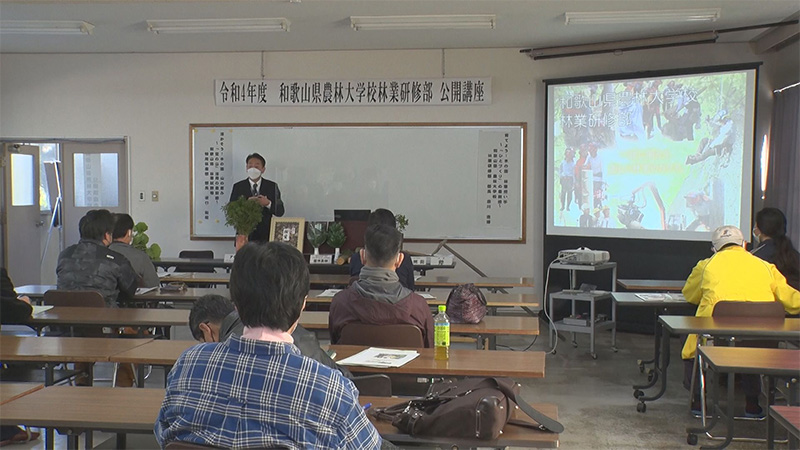 林業の将来を担う人材育成と和歌山県の森林に興味をもっていただくことを目的に開催する公開講座の様子を紹介。