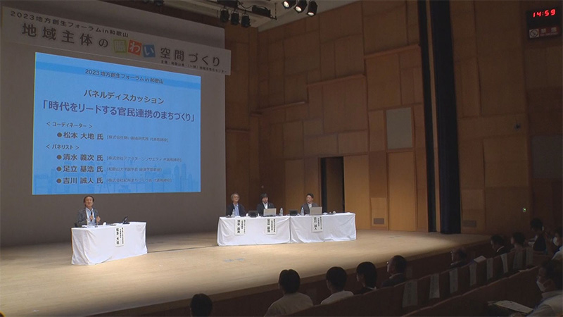 住民や事業者、行政職員等がまちづくりをともに考え、地域主体の賑わい空間づくりの実践につなげることを目的とした地方創生フォーラムの模様と、地域での取り組みを紹介。