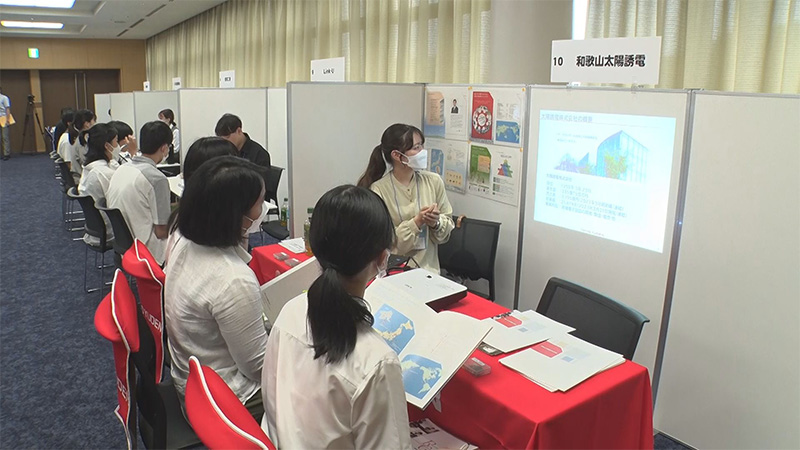 学生の県内就職を促進するために開催する、先輩社員との交流会と、働く環境を知ることができる企業研究フェアの模様を紹介。