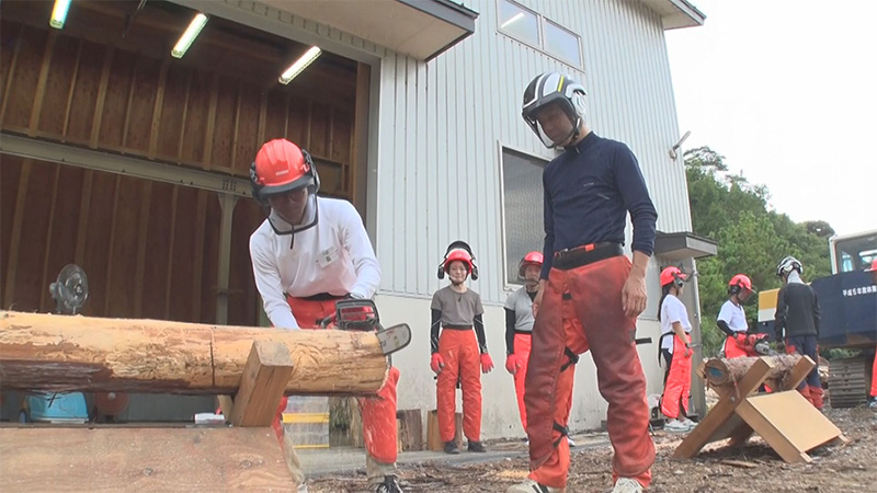 林業に関する知識や技能を学ぶことができる上富田町にある県農林大学校林業研修部について、オープンキャンパスのもようを紹介。