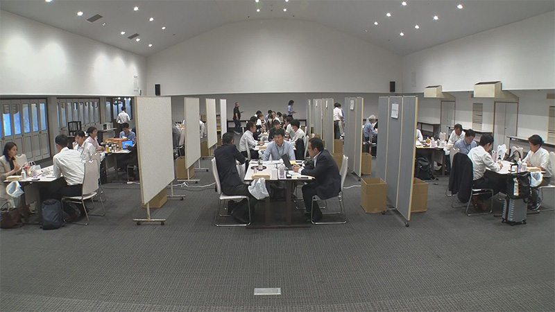 県内事業者の販路開拓・拡大を支援するため、複数の食品関連事業者のバイヤーを招聘し、バイヤーが求める商品と県内事業者の求める売り先を事前にヒアリングしたマッチング形式で行われる商談会の模様を紹介。