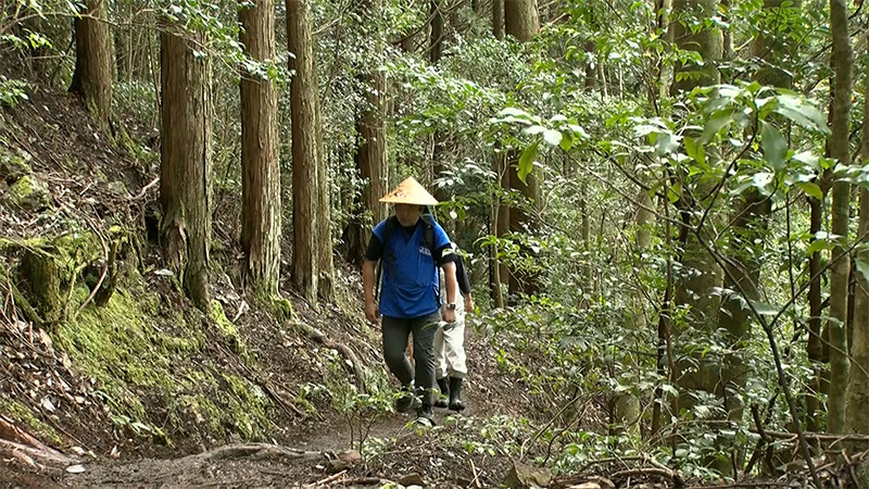 熊野古道中辺路の岩神王子付近が、紀伊半島大水害の被害を受け、通行止めになっていましたが、今年10月14年ぶりに復旧しました。そのルートを語り部と復旧に尽力した森林組合の関係者とともに歩きました。