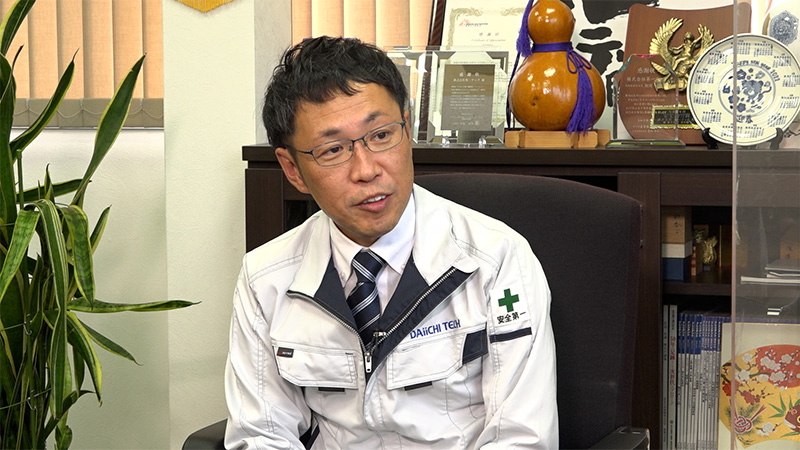 道路や上下水道、電力、通信設備など生活や産業の基盤となるインフラ設備を通してより豊かに暮らせる社会づくりに貢献してきた第一テック。朝間さんが歩んできた道、そして、これからの展望などについて、お話を伺います。