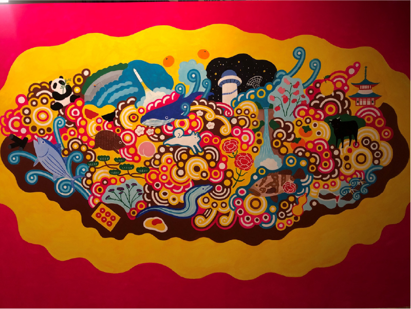 ペン画やアクリル絵の具、ペンキなどで丸をモチーフにする。絵画制作を中心個展開くほか、海水浴場やしょうゆ蔵など、県内各地で作品を描く。