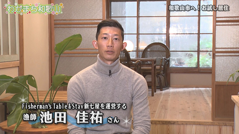 番組では、お試し居住施設のひとつ、雑賀崎地区のFisherman's Table & Stay 新七屋(しんちや)を訪問。1階はフローリング、2階は和室となっていて、レトロな雰囲気が非日常を感じることができる。また、漁師町ならではの体験も楽しむことができる。