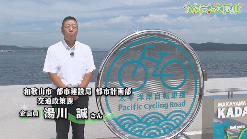 和歌山市交通政策課 湯川企画員が、道路標識の整備や加太の淡嶋神社前広場に整備した記念モニュメント、ゲートウェイ機能を備えたわかやままるしぇを紹介。あわせてサイクリストの声も紹介します。