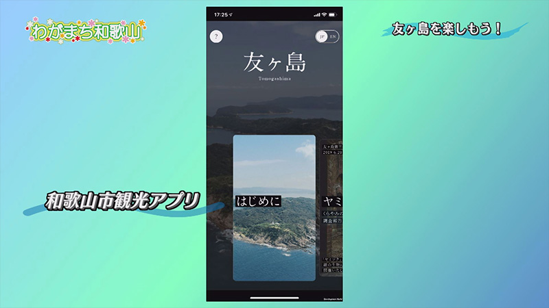 友ヶ島を楽しむために使える和歌山市の観光アプリや、「サマータイムレンダ」の作者で和歌山市出身の田中靖規(たなかやすき)さんのインタビューも紹介します。