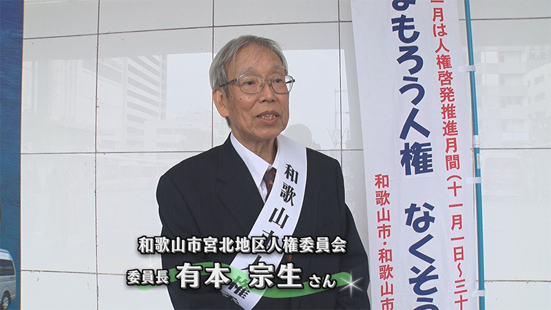 また、「和歌山市人権啓発推進月間」期間中に、鉄道の駅や商業施設などで啓発活動を行っています。活動した宮北地区人権委員会の有本委員長に、活動への思いなどを伺います。
