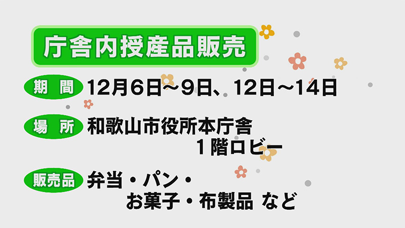 12月3日から9日の「障害者週間」にちなみ、和歌山市の障害者支援の取り組みを紹介します。その取り組みの一つが、市役所本庁舎1階ロビーで行われる「授産品販売」です。障害者の方々が、自身が働いている事業所で、お菓子やお弁当、雑貨を作り、市役所で販売します。12月6日~9日、12日~14日の開催を予定しています。