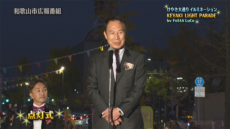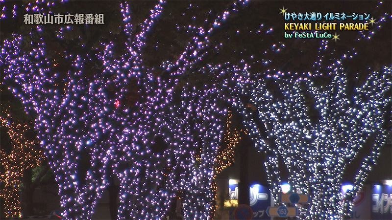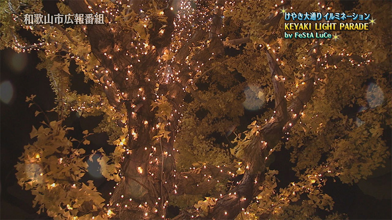 和歌山市の玄関口JR和歌山駅前から、和歌山城前までのけやき大通りおよそ2キロの区間が光輝くイルミネーションの並木道に変身。