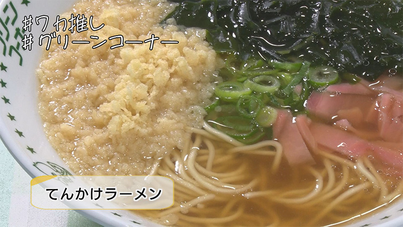 谷坂さんの推しは、子供の頃、家族でよく食べた思い出の味「てんかけラーメン」。天かすとショウガが絶妙のあとを引く美味しさ。