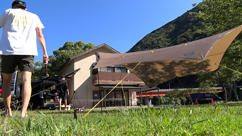 今回も、和歌山県白浜町日置川地域からお送りします。前回「紀伊半島最後の清流」と讃えられる日置川での渓流釣りに挑んだアウトドアショップOrangeの山本店長と堀西マネージャーが、志原海岸にある日置川町商工会のアンテナショップの「道の駅 海来館」で名産の日置川の天然鮎を使って地元で開発したオイル漬け「あゆチョビ」を見つけ、それを使ったキャンプめしを作る事に・・・。そして、キャンプ地として訪れたのは、日置川沿いの美しいロケーションが自慢の「向平キャンプ村」。ここに、夏のキャンプにお勧めのタープやテントを素早く設営し、早速 青空クッキング。「あゆチョビ」を使った手軽なキャンプ料理を披露。さてその味はいかに?