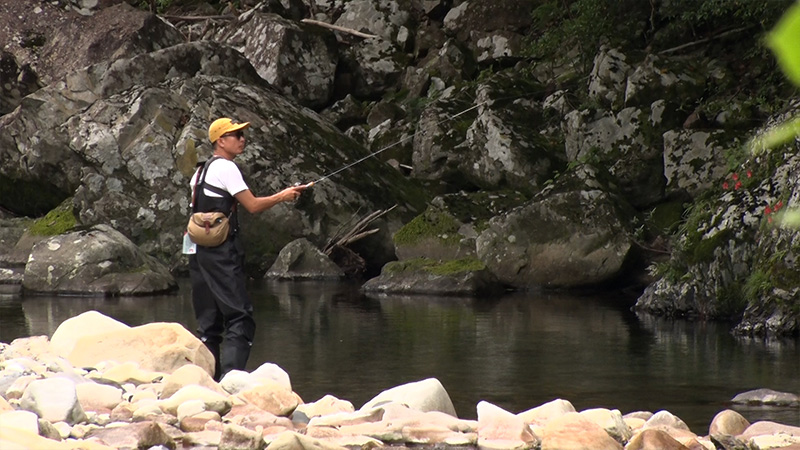 今回も、和歌山県白浜町日置川地域からお送りします。日置川の天然鮎を使って地元で開発したオイル漬け「あゆチョビ」を使ったパスタを堪能した番組キャンプアンバサダーの山本店長と堀西マネージャー。遊んで疲れた体を癒そうと、「向平キャンプ村」から日置川を挟んで対岸すぐ近くの「えびね温泉」で疲労回復を図り、翌朝もう一度渓流釣りでアマゴを狙う事に。ところが、ここで事件が・・・その結果、日置川の支流には 山本店長のみが向かい、前日釣果無しのリベンジに挑みます。日置川の渓谷で大自然に身を委ね、改めて こうした美しい山や川の素晴らしさを実感した出演者。アウトドアを舞台にするキャンプシーンでも豊かな自然を次世代に残していくことの大切さを伝えていきたいという。