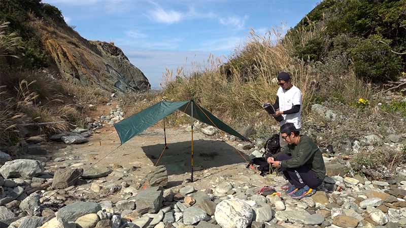 好きなところにテントを張れるのが魅力。レンタル用品も充実しており、手ぶらで来てもキャンプやBBQを楽しめる。それに無人島なのに綺麗なトイレが完備されているのも安心。番組キャンプアンバサダーを務める、アウトドアショップOrangeの山本店長と堀西マネージャーは、小船に乗り換えて、島の北にある定期船が来ない1日1組限定のサバイバルキャンプエリアに向かう。そこは人工物は何もなく、本当の野生を楽しむワイルドなキャンパー向けの場所。無人島での無骨なキャンプスタイルのためのギアを用意して、ワイルドキャンプが始まった。