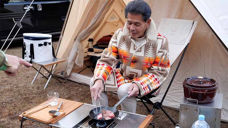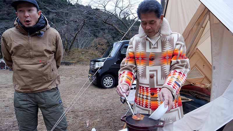 今回も前回の続き、アウトドアショップOrange会員専用のキャンプ場、かつらぎ町 新子キャンパーズパークに集結したキャンパーの、様々なスタイルのキャンプシーンを紹介する。番組2回目の出演となったキャンプ歴40年のベテランキャンパー口元さんが作る冬のキャンプめし。ステーキ肉を焼いてから薪ストーブでコトコト煮込んだビーフシチューは、絶品。番組キャンプアンバサダーも驚きの味に舌鼓を打つ。そして、もう1組は、家族3人で参加した吉瀧さんファミリー。ビンテージのギアだけでなく最新の物をバランス良く取り入れたハイセンスなキャンプスタイルが見ものです。また、近年入手困難な灯油の加圧式バーナーも登場。面倒な作業や部品交換など手間をかけなくてはいけないのが良いのだとか。そうした物を通してキャンパー同士のコミニュケーションが深まるのもキャンプの魅力の一つだと話します。