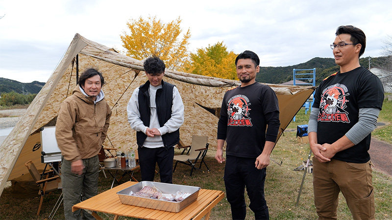 Orange山本マネージャー、堀西マネージャー、古座川ジビエ 山の光工房 ジャイアン貴裕さん、森田 裕三さん