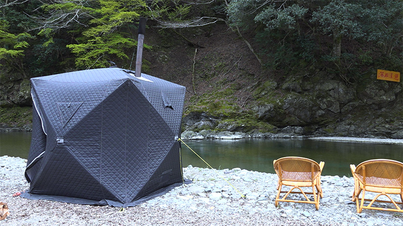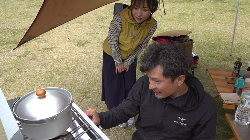 今回も前回の続きで、和歌山県有田川町から、番組レギュラーのアウトドアショップOrange 山本マネージャーとゲストの いわさきふきこさんが、リポートをお送りします。「遠井キャンプ場」にタープを張ってキャンプのベース基地を完成させた2人は、地元の食材を使ってキャンプめし作りを行います。地鶏や昔ながらの手造り豆腐を使い、メスティンですき焼き。また、地域のシンボルでもある棚田「あらぎ島」のお米をライスクッカーで炊くのですが、ちょっとした勘違いで“あんなことに…”。 この他、清流 有田川の目の前に設置したサウナテントで癒しの時間も満喫。そして番組恒例の焚き火を囲んでのトークタイムでは、「遠井キャンプ場」を運営する地元の方や、このキャンプ場に魅せられて足繁く通うテント愛好家の方と このキャンプ場の魅力について語ります。