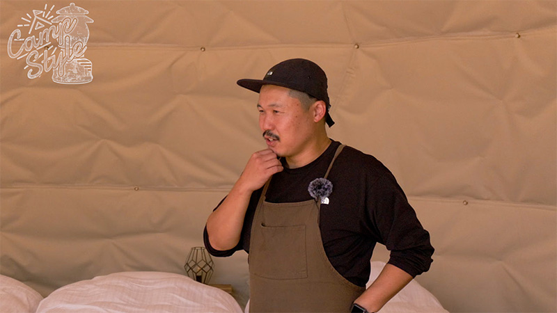 有田川町清水の川と緑に囲まれたキャンプ場「W.A.S riverside nature terrace」へ。番組レギュラーのアウトドアショップOrange 山本健介に加えて、陽気過ぎる謎の女性ゲストが初登場! その2人が、ノリが抜群のスタッフさんに案内してもらって施設を巡ります。ボードゲームのプロ・ちむさんが持ち込んだフィンランド生まれの人気ゲーム「モルック」で、大人3人が明るく楽しく真剣勝負! 果たしてその結果は…? たっぷり遊んだあとのキャンプ飯は、ちむさんお手製のパエリア。初挑戦でドキドキしながら作った結果、まさかの展開に!? にぎやか過ぎるキャンプスタイル、お楽しみに!
