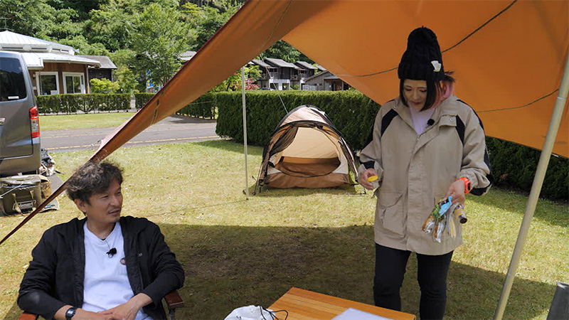 和歌山市から車で1時間40分の田辺市龍神村へ! 龍神村は土地のほとんどが標高500m以上の山々で、近くには「日本三美人」の一つで有名な龍神温泉があり四季折々の自然を楽しめます。そんな自然に囲まれた「宮代オートキャンプ場」はオートサイト、コテージ、芝生広場まであり、キャンプ好き垂涎の場所なんです。ちむさんのわくわくキャンプクッキング! 開始前から山本さんは不安いっぱいですが、ちむさんはドヤ顔で料理スタート。そして恒例の「ちむちむのコーナー」では、自分のエイリアンをいち早く脱出させるボードゲーム「ドローンホーム」をキャンプ場スタッフ・英さんと一緒にガチンコ対決! タープの下で宇宙船のドローンが飛ぶ様子はめちゃくちゃシュールで大爆笑! ちむさんのアレンジお菓子のコーナーでは山本さんのリアクションに異変が…? シメの英さんの川柳も秀逸です。笑いっぱなしの楽しいキャンプスタイル、お楽しみに!