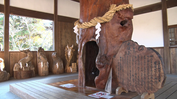 4月の第1日曜日に開催される木祭りでは、チェーンソーカービングの実演が行われ、翌年の干支が奉納されることで話題を呼んでいます。