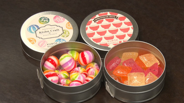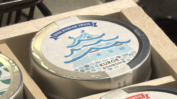 海南市の新しいお土産として地元の老舗あめ屋さんとコラボし作られた缶入りあめ「黒江BONBON」。