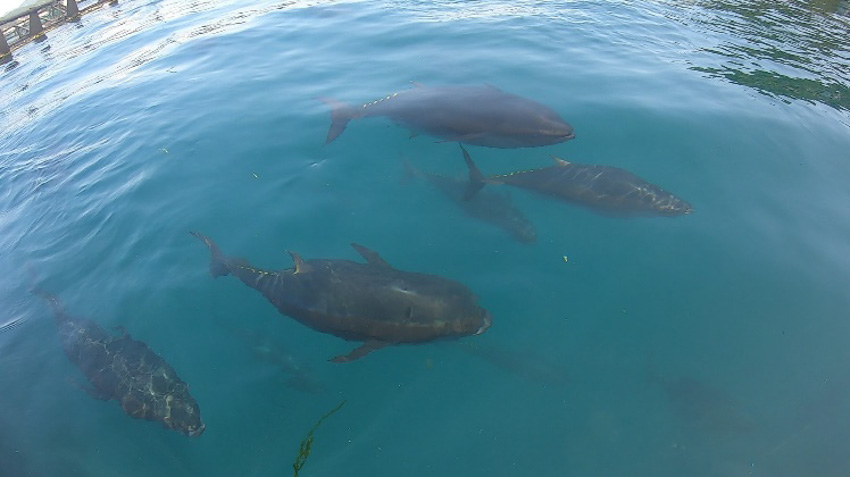 エサやりを体験するいけすには、20~40kgの本マグロが数百匹泳いでおり巨大まぐろを目の前に海の仕事の醍醐味が味わえます。