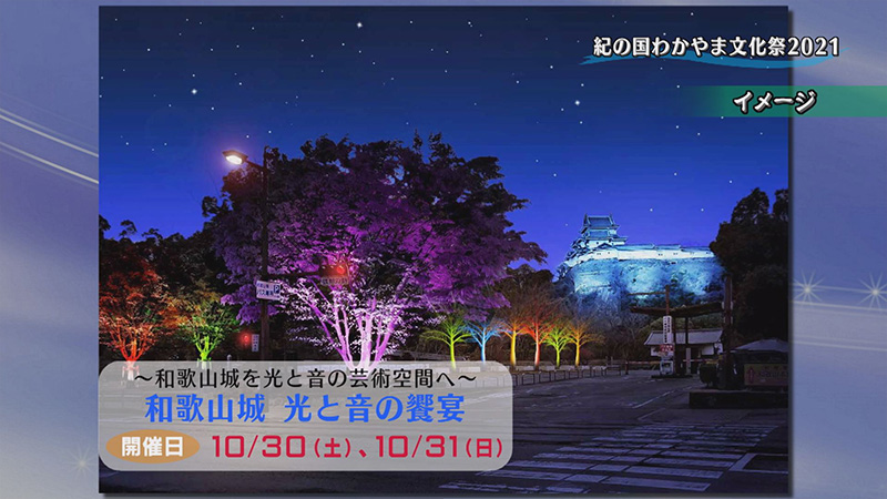 和歌浦周辺で行われる「和歌の聖地 和歌の浦魅力探訪」、加太・友ヶ島の歴史・文化・自然をテーマにしたアート作品の展示やさまざまなイベントが行われる「カダハク2021」、障害のある人のアート作品をまちなかの店舗などに展示する「紀らり!まちなか美術館」、和歌山城西の丸広場で様々な光の演出が施される中、和歌山市の文化や伝統芸能などのステージイベントを行う「和歌山城 光と音の饗宴」など、関係者のインタビューを交えながら紹介します。