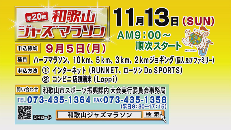 和歌山市スポーツ振興課の志場眞未さんが出演し、ジャズマラソンを紹介。また、市民ランナーの方にジャズマラソンの魅力や大会に向けた意気込みを伺います。
