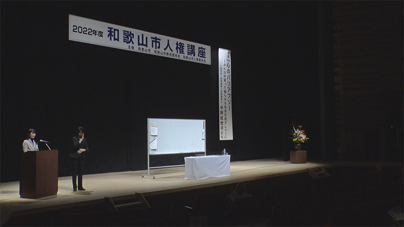 具体的な取り組みの一つとして、10月13日に和歌山城ホールで行われた「和歌山市人権講座」を参加者のインタビューなども交え紹介します。