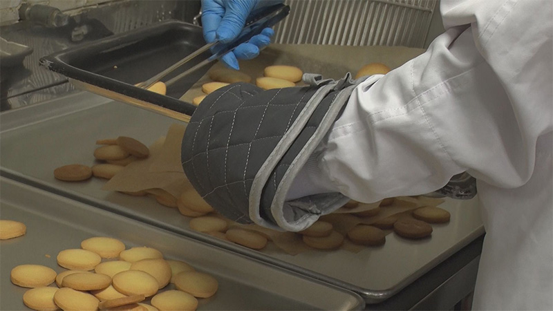 授産品販売に参加する菓子工房「ふぁんふぁん」を訪ね、クッキーなどの焼き菓子作りの様子を伝えるほか、菓子工房で働く障害者の方にお話を伺います。