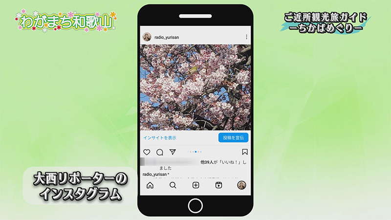 大西リポーターと観光課の名手さんが、和歌山市嘉家作丁の早咲きの桜を見に訪れ、撮影した写真をインスタグラムに投稿しています。