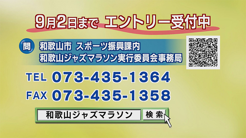 和歌山市からのお知らせです。観第22回和歌山ジャズマラソンが11月10日、日曜日に開催されます。ただ今、エントリー受付中です。