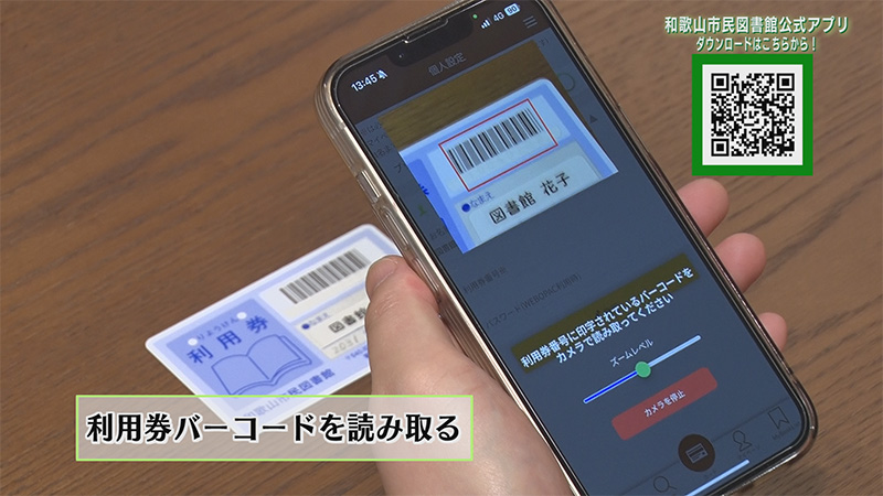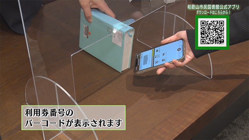 ・登録が完了するとアプリ上に表示される利用券バーコードを提示することで貸し出しができます。