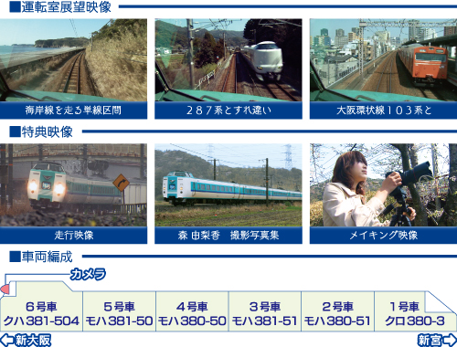 1978年(昭和53年)に、日本初の振子式営業用電車として紀勢線に登場した381系。車両を大きく傾けながら、カーブの多い紀伊半島の海岸線を走る。普段は見ることのできない381系高運転台からの前面展望(新宮-新大阪間)を、高画質なブルーレイで。スチール写真は鉄道カメラマンの森由梨香が担当。